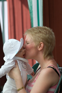 Kärleken mellan mor och dotter fångad i en ögonblicksbild. Frida var inte medveten om kameran, men blev glad över bilden när den väl fångats. Den talar ganska mycket för sig själv...